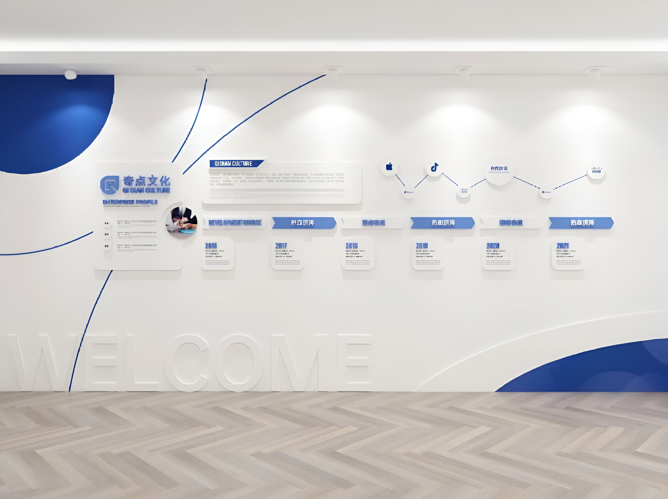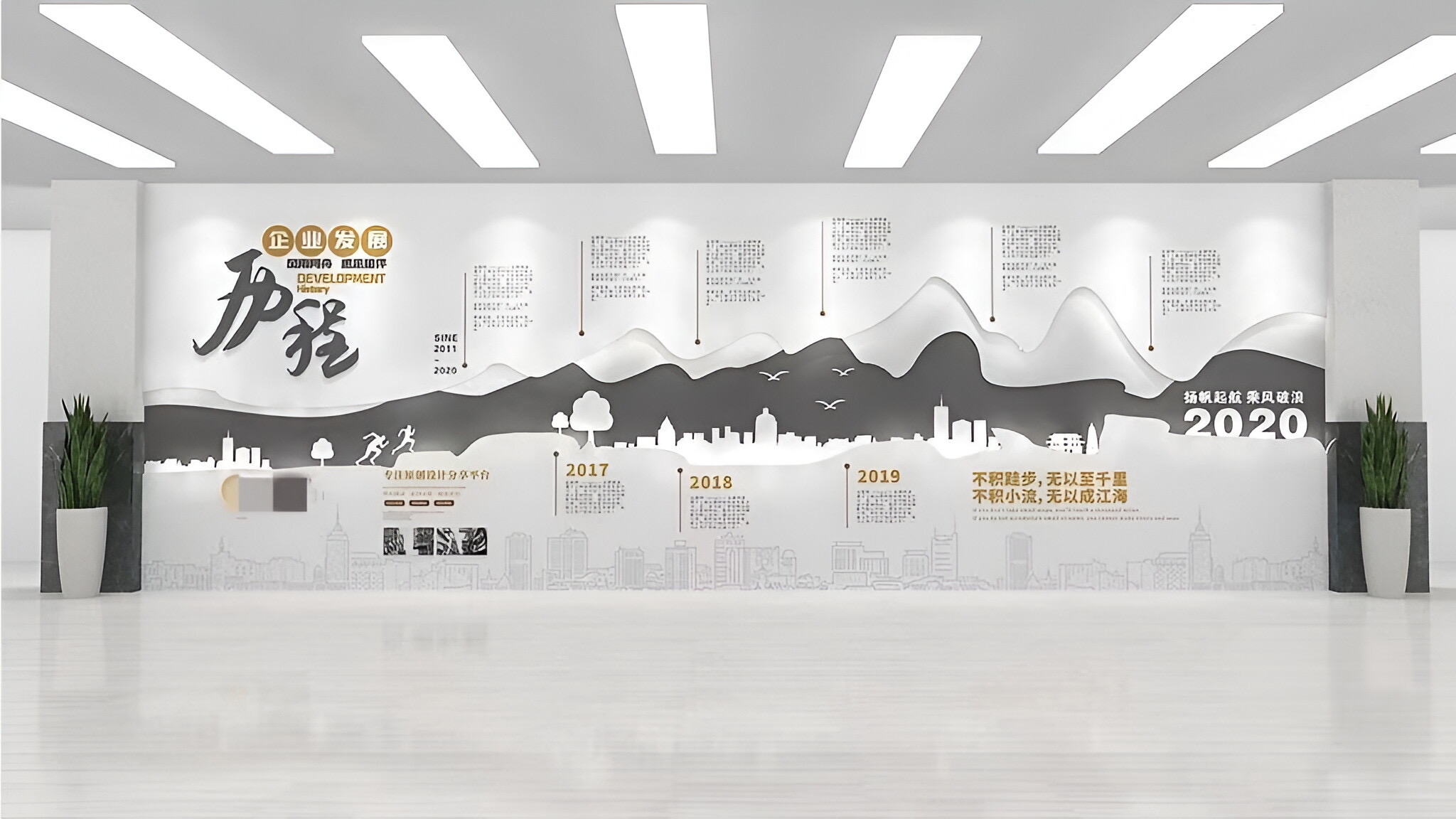 企業(yè)歷程墻可以表達公司多年的發(fā)展成果,利用時間軸來呈現(xiàn)企業(yè)的發(fā)展歷程,在時間滾軸上留下一個個真實的印記,歷史道路刻在時光里。