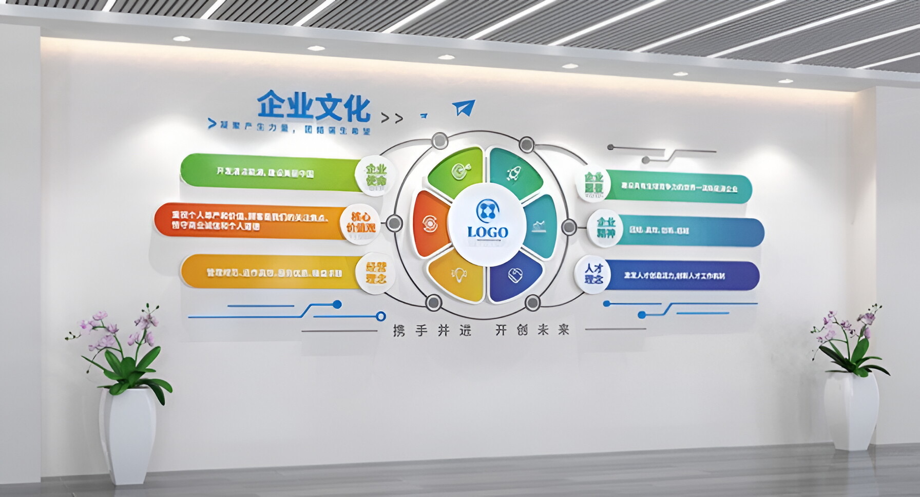 企業(yè)文化墻即企業(yè)的文化展示面,它是一個企業(yè)文化底蘊的內(nèi)藏與外現(xiàn),也是文化的載體與傳承。